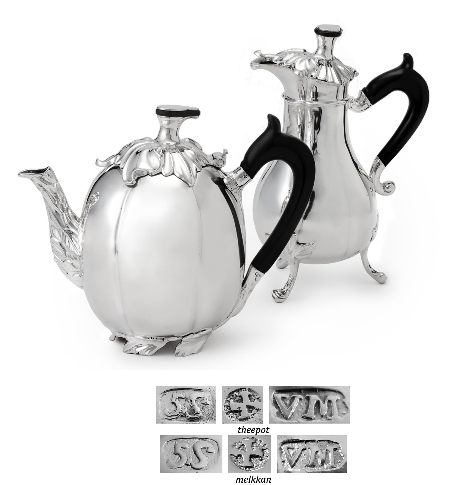 TWO-PIECE DUTCH SILVER PUMKIN-SHAPED TEA SERVICE